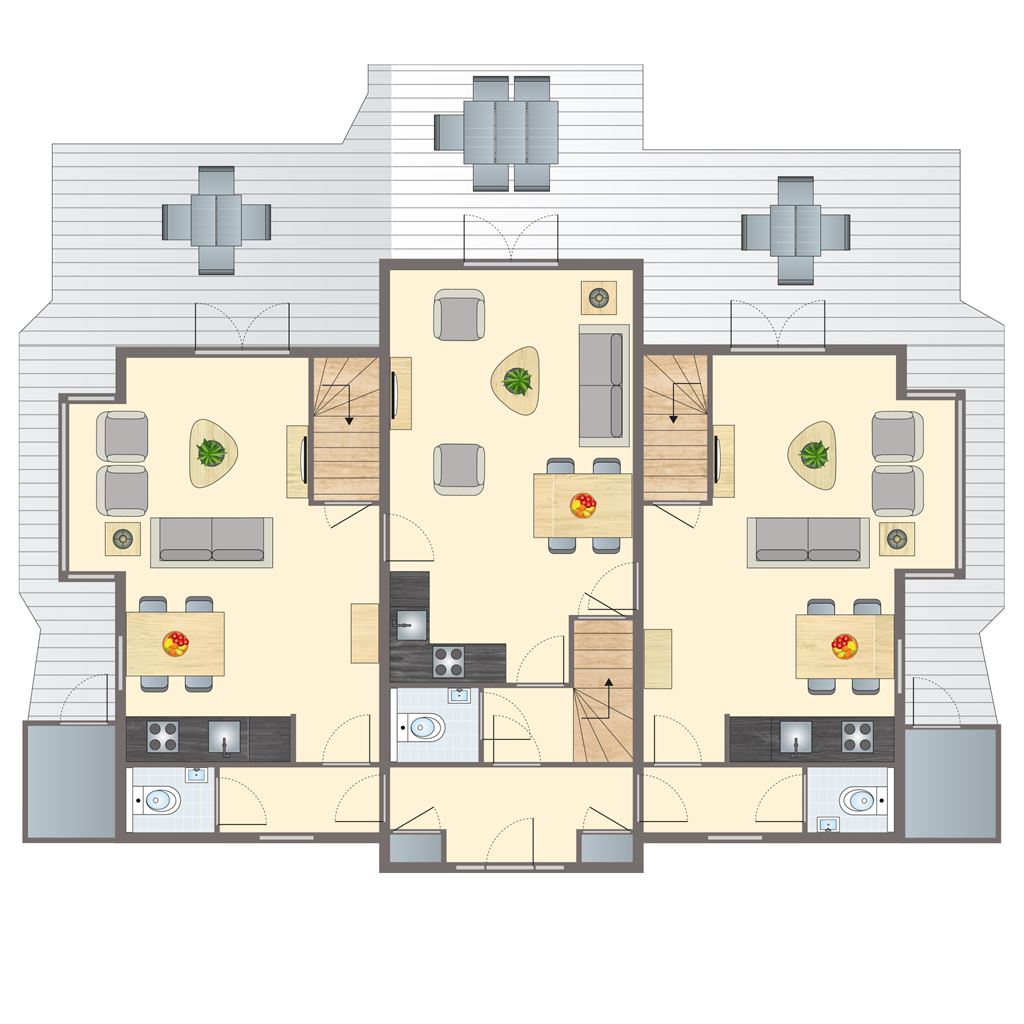 - Three badrooms with shower and washbasin on the first floor